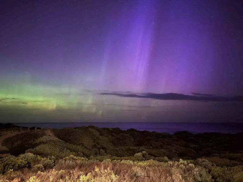 Öte yandan, Güneş’teki bu olağanüstü hareketliliğin etkisiyle Güney Yarımküre’de gökyüzü adeta renklere büründü. Türk fotoğraf sanatçısı Asım Buday, Avustralya’nın Victoria eyaletinde bulunan St Andrews Beach - Melbourne bölgesinde, manyetik fırtınanın etkisiyle oluşan etkileyici aurora (kutup ışıkları) manzarasını görüntüledi. Mor ve yeşil tonların gökyüzünde dans ettiği anlar, yaşanabilecek manyetik fırtınanın görsel yansımalarını gözler önüne serdi.