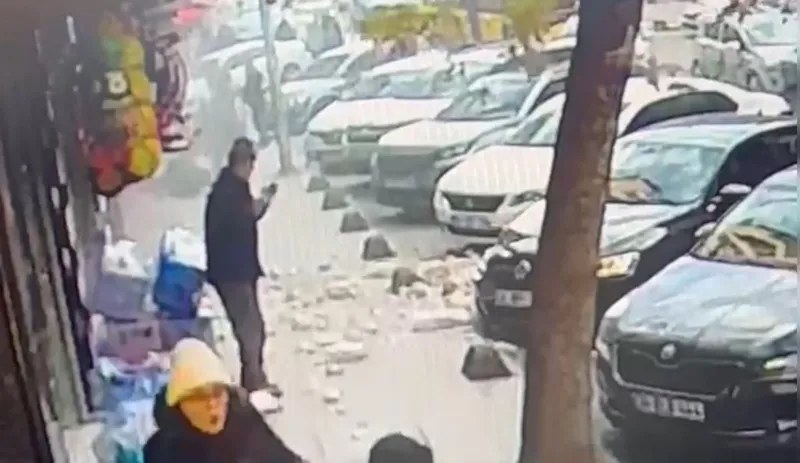 İstanbul Güngören’de 5 katlı binanın en üst katındaki balkon çöktü. Yayalar, düşen parçanın altında kalmaktan son anda kurtulurken, o anlar güvenlik kamerasına anbean yansıdı.