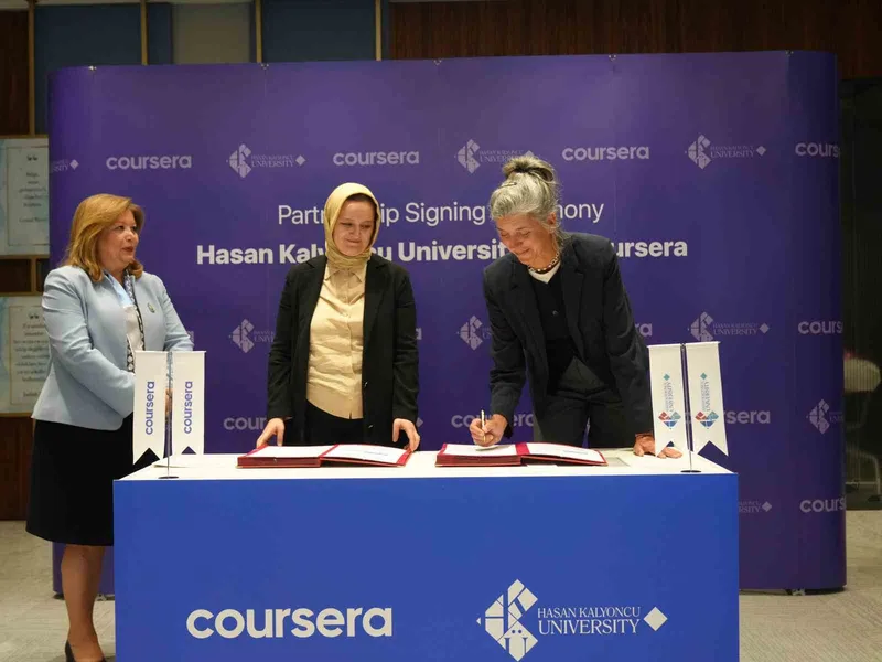 Hasan Kalyoncu Üniversitesi (HKÜ), dijitalleşme, uluslararasılaşma ve beceri temelli öğrenme çağının gerekliliklerine yanıt veren önemli bir adım daha atarak dünyanın önde gelen çevrim içi eğitim platformlarından ‘Coursera’ ile stratejik iş birliği protokolü imzaladı.