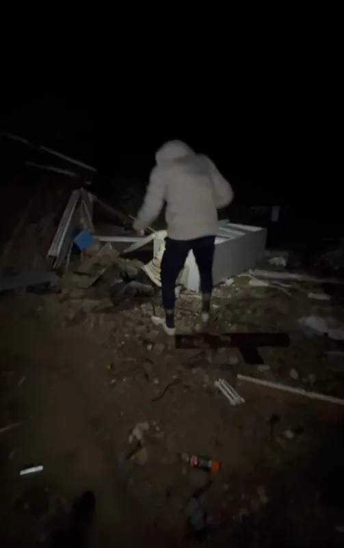 Hortumun savurduğu konteynerdeki yaralı adamın bulunduğu anların görüntüsü çıktı