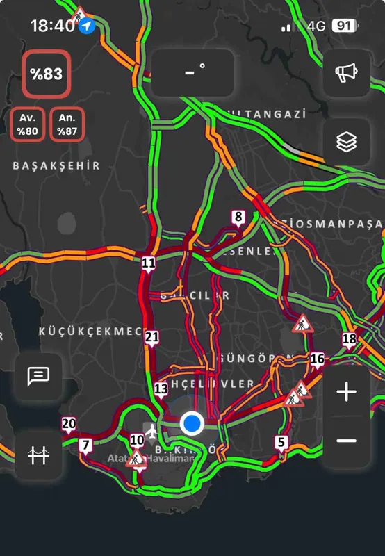 İstanbul’da trafik yoğunluğu akşam iş çıkış saatlerinde arttı. İstanbul Büyükşehir Belediyesi Trafik Yoğunluğu Haritası verilerine göre trafik yoğunluğu yüzde 83 olarak ölçüldü. D-100 Karayolu’nda araçlar ilerlemekte zorlanırken uzun araç kuyrukları oluştu. İşten ve okuldan dönen vatandaşlar evlerine gitmekte zorluk yaşadı.