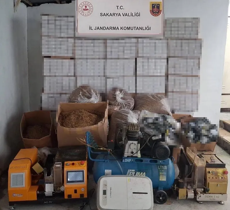 Sakarya’nın Geyve, Karasu, Karapürçek ve Serdivan ilçelerinde kaçakçılık suçlarıyla mücadele çerçevesinde İl Jandarma Komutanlığı ekiplerince yapılan operasyonlarda, 6 şahıs gözaltına alındı. Şahısların ikametlerinde ve iş yerlerinde yapılan aramalarda 872 bin 860 adet boş makaron, 408 bin 950 adet doldurulmuş makaron, 151 kilo 110 gram tütün, bin 180 paket nargile tütünü, 53 kilo 500 gram kıyılmış tütün, 4 adet sigara sarma makinası, 1 adet hava nemi kurutma makinası, 1 adet elektronik sigara sarma makinası ve 1 adet hava kompresörü ele geçirildi.
