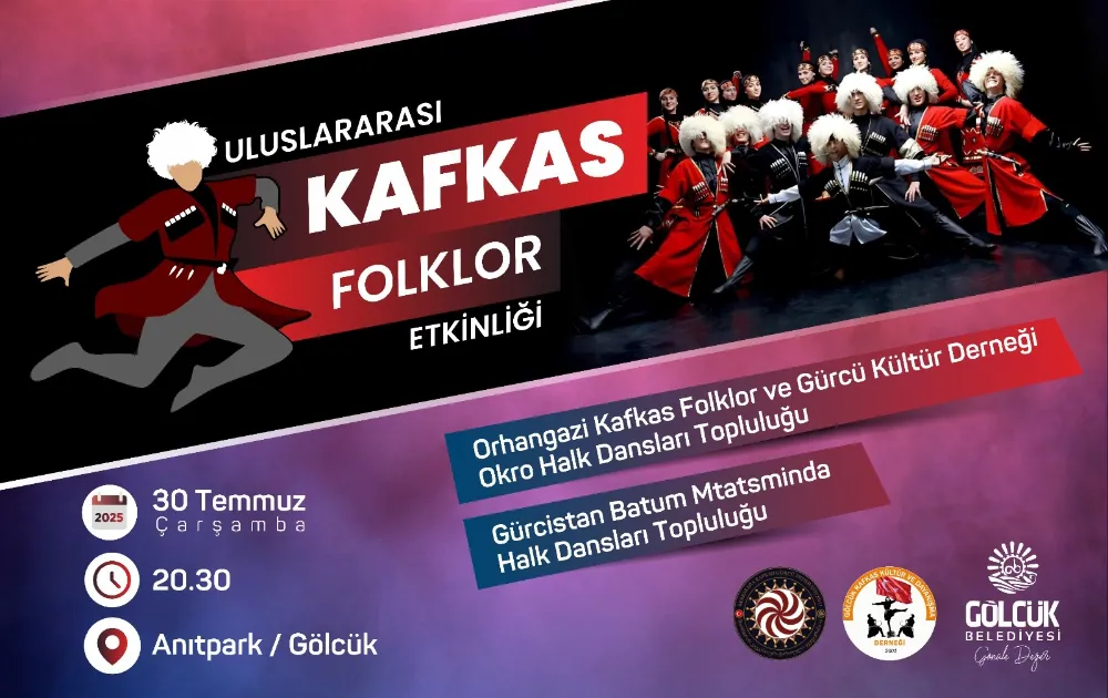 Kafkas halk oyunları, muhteşem gösterileri ile Gölcüklülere unutulmaz bir akşam daha yaşatacak. Gölcük Belediyesi, Marmara Kafkas Gürcü Federasyonu, Gölcük Kafkas Kültür ve Dayanışma Derneği iş birliğinde; geleneksel olarak düzenlenen Uluslararası Kafkas Folklor Etkinliği, 30 Ağustos Çarşamba günü saat 20.30’da Anıtpark’ta başlayacak. Etkinlikte; Türkiye ve Gürcistan’dan gelecek Kafkas halk oyunları ekipleri, Kafkas halk oyunlarının birbirinden güzel örneklerini sergileyecekler.