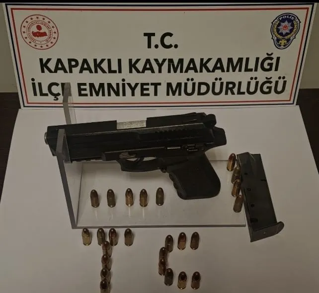 Kapaklı İlçe Emniyet Müdürlüğü ekiplerince ruhsatsız silahlanmaya yönelik yapılan saha çalışmalarında M.Ç. ve M.Y. isimli şüphelilerin üzerinde 2 adet ruhsatsız tabanca ve 25 adet fişek ele geçirildi.