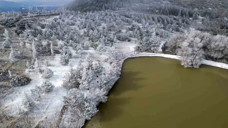 Manisa’nın 1517 metre rakıma sahip Spil Dağı Milli Parkı adeta buz kesti. Gün boyu -6 dereceleri gören ve gece saatlerinde -12’lere varan hava sıcaklıkları nedeniyle ağaçlar, bitki örtüsü ve kayalık alanlar üzerinde kalın bir kırağı tabakası oluşturdu. Kar yağışının beklenen düzeyde gerçekleşmemesi nedeniyle beyaz örtü bu kez karla değil, tamamen don ve buzlanmayla meydana geldi.