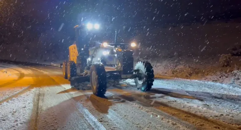 Kar yağışının saat 01.30 itibarıyla şiddetini artırması üzerine teyakkuzda bekleyen yaklaşık 500 personel, ulaşımda aksamaların yaşanmaması için kar küreme ve tuzlama çalışmalarını sürdürüyor.