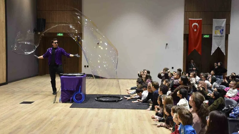 Karacabey Belediyesi tarafından yarıyıl tatiline özel olarak düzenlenen geleneksel sömestr çocuk etkinlikleri, Ergün Koç Kültür Merkezi’nde coşkulu bir açılışla başladı. Bubble Show’dan Hacivat-Karagöz’e, bilim deneylerinden sirk gösterilerine kadar birçok renkli etkinliğin yer alacağı program, çocuklara unutulmaz bir tatil yaşatırken, ücretsiz ulaşım hizmetiyle de ailelere büyük kolaylık sağlıyor. Belediye Başkanı Fatih Karabatı, "Çocuklarımızın tatillerini mutlu, verimli ve güzel hâtıralarla geçirmeleri bizim için çok kıymetli. Onların yüzündeki tebessüm, yaptığımız her çalışmanın en büyük karşılığıdır." dedi.