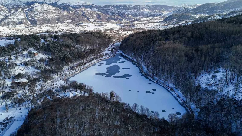 Ankara’nın Çubuk ilçesine yağan kar sonrası Karagöl Tabiat Parkı beyaza büründü.