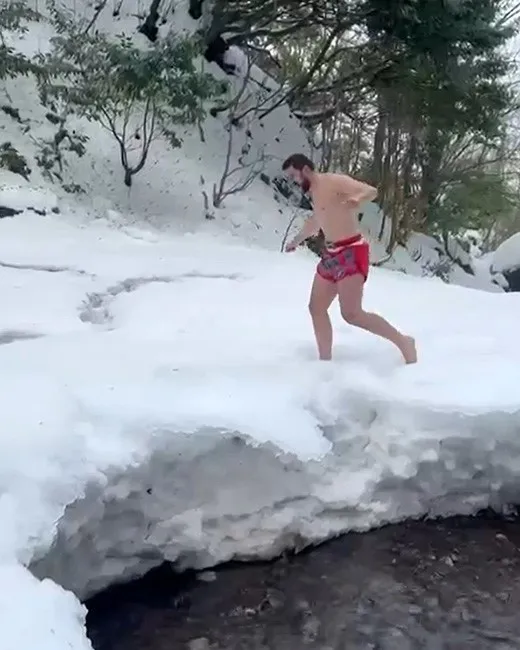 Karda şortla gezip şelale altında antrenman yaptı