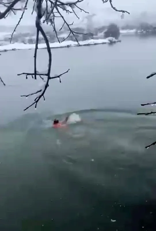Karlı havada Dicle Nehri’ne daldı