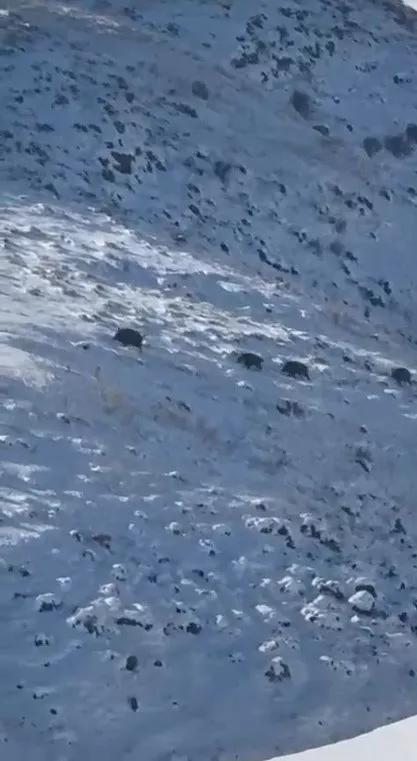 Kars’ın Akyaka ilçesine bağlı Küçükdurduran ve Sulakbahçe köylerinde sabah erken saatlerde ortaya çıkan domuz sürülerinin, koşarak karlı arazide ilerlediği görüldü. Domuz sürüleri Tokay Kurtbaş ve Mahsuncan Işık, tarafından cep telefonu kameralarıyla kaydedildi. Görüntülerde, kalabalık domuz sürüsünün karla arazilerde ve dağlık bölgede hızla kaçtığı anlar yer aldı.