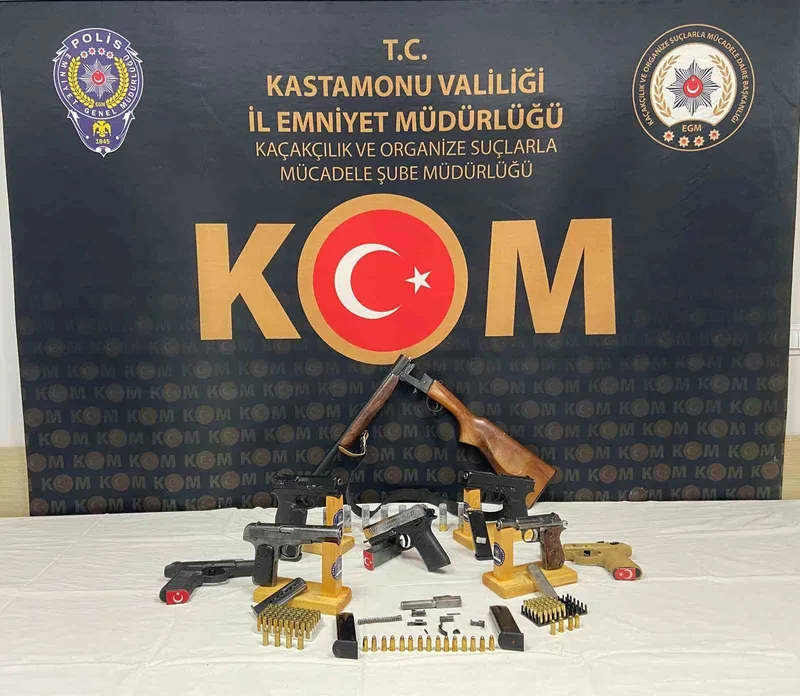 Edinilen bilgiye göre, Kastamonu İl Emniyet Müdürlüğü Kaçakçılık ve Organize Suçlarla Mücadele Şube Müdürlüğü ekiplerince il merkezinde tespiti yapılan bir eve ve bir işyerine eş zamanlı operasyon düzenlendi. Operasyon kapsamında yapılan aramalarda, 7 adet ruhsatsız tabanca, 1 adet ruhsatsız av tüfeği, 9 adet şarjör ve 131 adet çeşitli çaplarda fişek ele geçirildi.