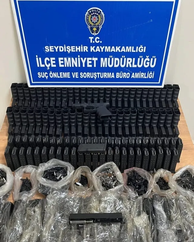 Edinilen bilgiye göre, Seydişehir İlçe Emniyet Müdürlüğü Suç Önleme ve Soruşturma ile Narkotik Suçlarla Mücadele ekipleri, dün bir dinlenme tesisinde şüpheli şahsa yönelik operasyon düzenledi. Davranışları ve yanındaki ağır valizler nedeniyle durdurulan R.Y. isimli şahıs, kimlik kontrolünün ardından tedirgin tavırlar sergiledi. Savcılık kararıyla şüphelinin valizlerinde yapılan aramada, 53 adet tabanca gövdesi, 50 adet tabanca şarjörü, 48 adet tabanca sürgü mekanizması, çok sayıda tetik çıkarıcı gibi küçük tabanca parçaları ele geçirildi. Tüm malzemelere el konulurken şüpheli R.Y. gözaltına alındı.