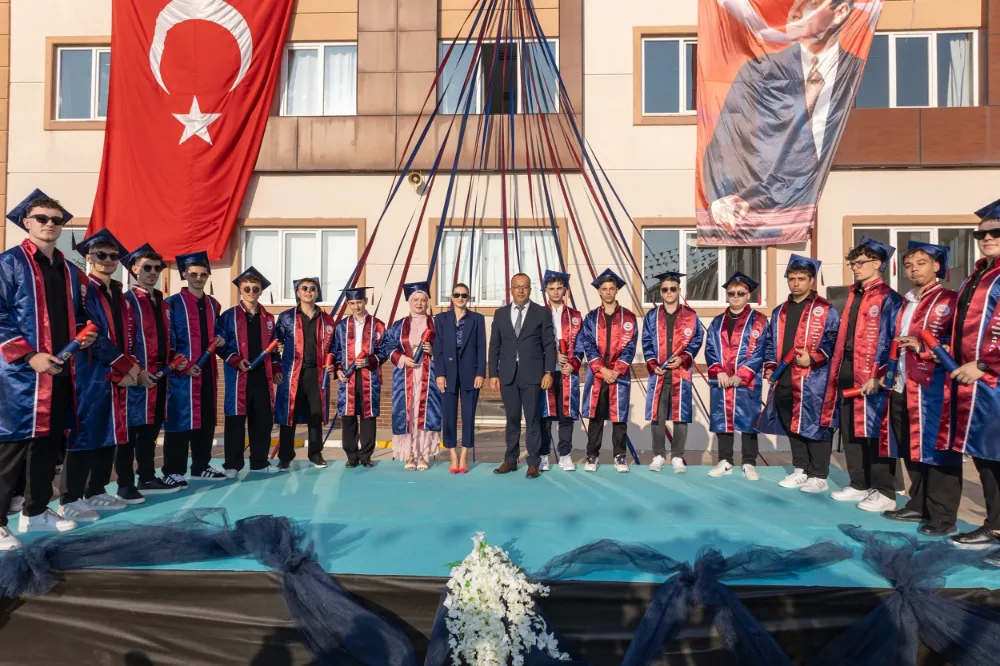 Okul müdürü Coşkun Cebeci, öğrencileriyle gurur duyduğunu belirterek, başarı dileklerini iletti. Konuşmaların ardından dereceye giren öğrenciler sahneye davet edildi. İkinci olan Sude Nur Çakmak ve üçüncü olan Emirkaan Karaçam'a başarılarından dolayı hediyeleri takdim edildi. Tüm mezun öğrencilere mezuniyet belgeleri verilirken, okul birincisi Öznur Canevi, ismini okulun anı kütüğüne çaktı. Ardından, mezun öğrenciler okulun bayrak ve flamasını 11. sınıf öğrencilerine devretti. Tören, öğrencilerin keplerini hep birlikte havaya atmasıyla sona erdi. Coşkulu anların yaşandığı mezuniyet töreninde aileler ve öğretmenler duygu dolu anlar yaşadı.