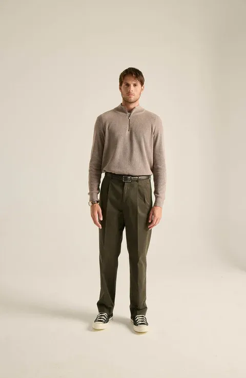 Kumaş pantolon, her iki beklentiyi de karşılayabilen nadir parçalardan biri olarak gardıroplarda yer bulur. Zarif bir görünüm sunarken vücuda uyum sağlayan bu pantolonlar, modern erkek giyiminde önemli bir yere sahiptir.