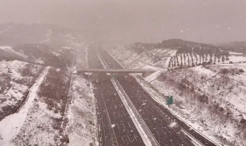 Kuzey Marmara Otoyolu’nda kar yağışı havadan görüntülendi