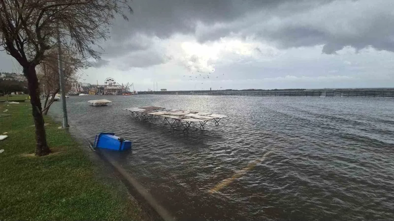 Lodos vurdu, Tekirdağ sahili suyla kaplandı