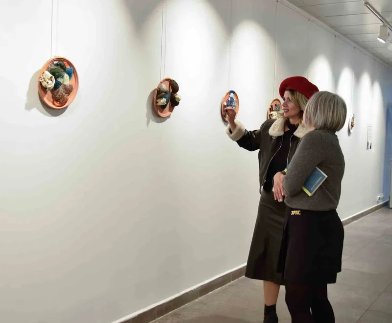 Yaklaşık 40 eserin yer aldığı sergide, seramik tabaklar üzerine oluşturulan özgün kompozisyonlar dikkat çekti. Geri dönüştürülmüş seramik ve cam malzemelerle üretilen eserler, denizle kurulan ilişkinin zaman içinde bıraktığı izleri ve yolculuklar sırasında biriken anıları görünür kıldı. Cam malzeme denizin ışığını ve rengini yüzeylere taşırken, seramik malzeme antik yolculukları ve kıyı yaşamını çağrıştıran bir zemin sundu.