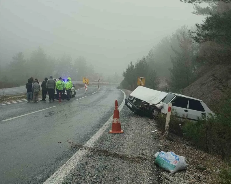 Edinilen bilgilere göre, Muğla-Denizli karayolu Gölcük Mahallesi mevkiinde seyir halinde olan otobüs ile Fiat Tofaş marka otomobil çarpıştı. Çarpışmanın etkisiyle otomobil kağıt gibi savrularak yol kenarında durabildi.
