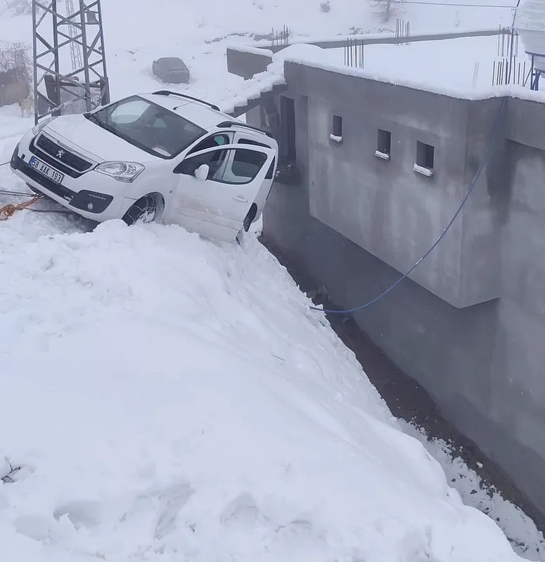 Siirt’te kayan otomobil evin duvarında asılı kaldı