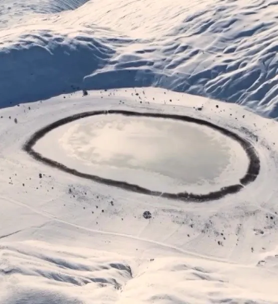 İliç Belediye Başkanı Mehmet Elçi’nin paylaştığı görüntüler ilgi görürken, yaklaşık 350 metre çapındaki ve jips erimesiyle oluşan göl, kış mevsiminde farklı bir görünüme büründü.