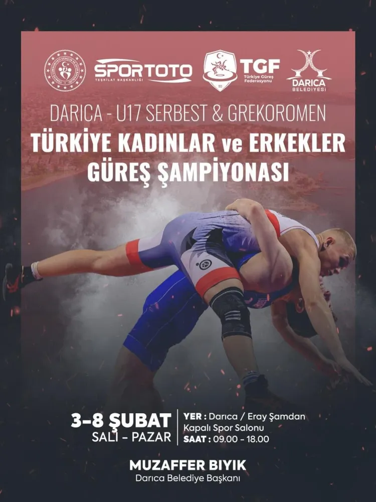 Darıca Belediyesi’nin spor şehri vizyonu doğrultusunda ev sahipliği yapacağı U17 Serbest ve Grekomen Türkiye Kadınlar ve Erkekler Güreş Şampiyonası, Türkiye’nin dört bir yanından gelen yüzlerce genç sporcuyu 3–8 Şubat tarihleri arasında Darıca’da buluştururken Belediye Başkanı Muzaffer Bıyık, tüm sporseverleri bu büyük organizasyona davet etti.