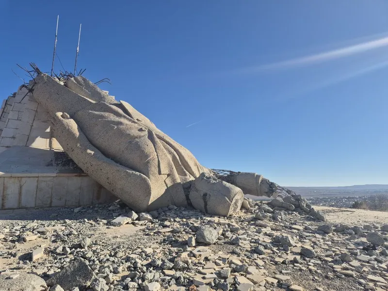 Suriye’de geçtiğimiz yıl Esad rejiminin yıkılmasının ardından Şam’ın yaklaşık 88 kilometre kuzeyinde bulunan ve "Heykel Tepesi" olarak bilinen noktaya iş makineleriyle çıkan halkın devirdiği Hafız Esad’ın ülkedeki en büyük heykeli hale devrik halde bulunuyor.