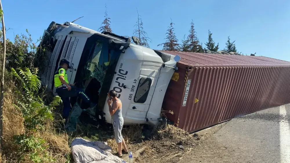 İddiaya göre, 41 AUC 587 plakalı tır sürücüsü direksiyon hakimiyetini kaybederek önce yol bariyerlerine çarptı, ardından aydınlatma direğini devirerek devrildi.