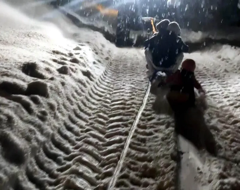 Traktöre bağlanan kızaklarla gün boyu kayak yaptılar