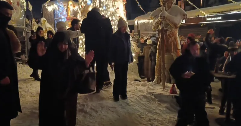 Uludağ’da müzik, eğlence ve havai fişek gösterileriyle süren yılbaşı kutlamaları, renkli anlara sahne olurken, yaşlı teyzenin dansı gecenin unutulmaz anı olarak hafızalara kazındı.