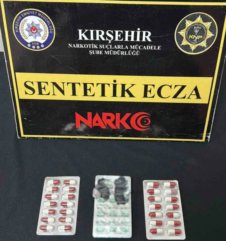 KIRŞEHİR (İHA) – Kırşehir’de bir kişinin üst aramasında 36 adet sentetik hap çıktı.
