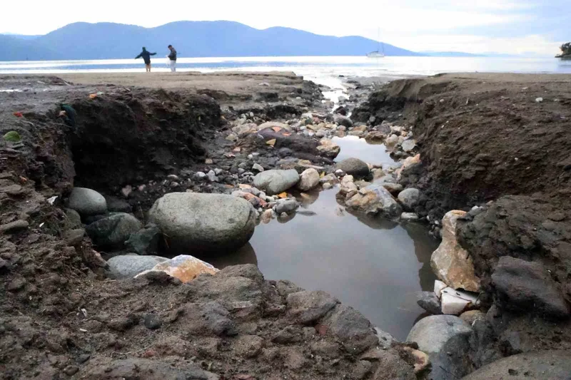 Yılın en kısa gününde deniz suyu çekildi, sağanak yağmur sahili tahrip etti