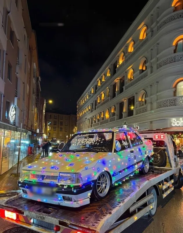 Yılın son günlerinde bir sürücü, vatandaşların yüzünü gülümseten renkli bir etkinliğe imza attı. Otomobilini sarmaşık ledlerle kaplayan sürücü, rengarenk bir görünüme kavuşan aracını sokaklarda vatandaşlarla buluşturdu. Bu durumun trafik kurallarına aykırı olduğunun bilincinde olan sürücü, muhtemel kazaların önüne geçmek amacıyla otomobilini çekici yardımıyla sokak sokak gezdirdi. Sürücünün bu duyarlı davranışı, vatandaşlar tarafından büyük takdir topladı.