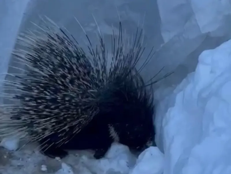 Hakkari’nin Yüksekova ilçesinde nesli tükenme tehlikesi altında olan Hint oklu kirpi görüntülendi.